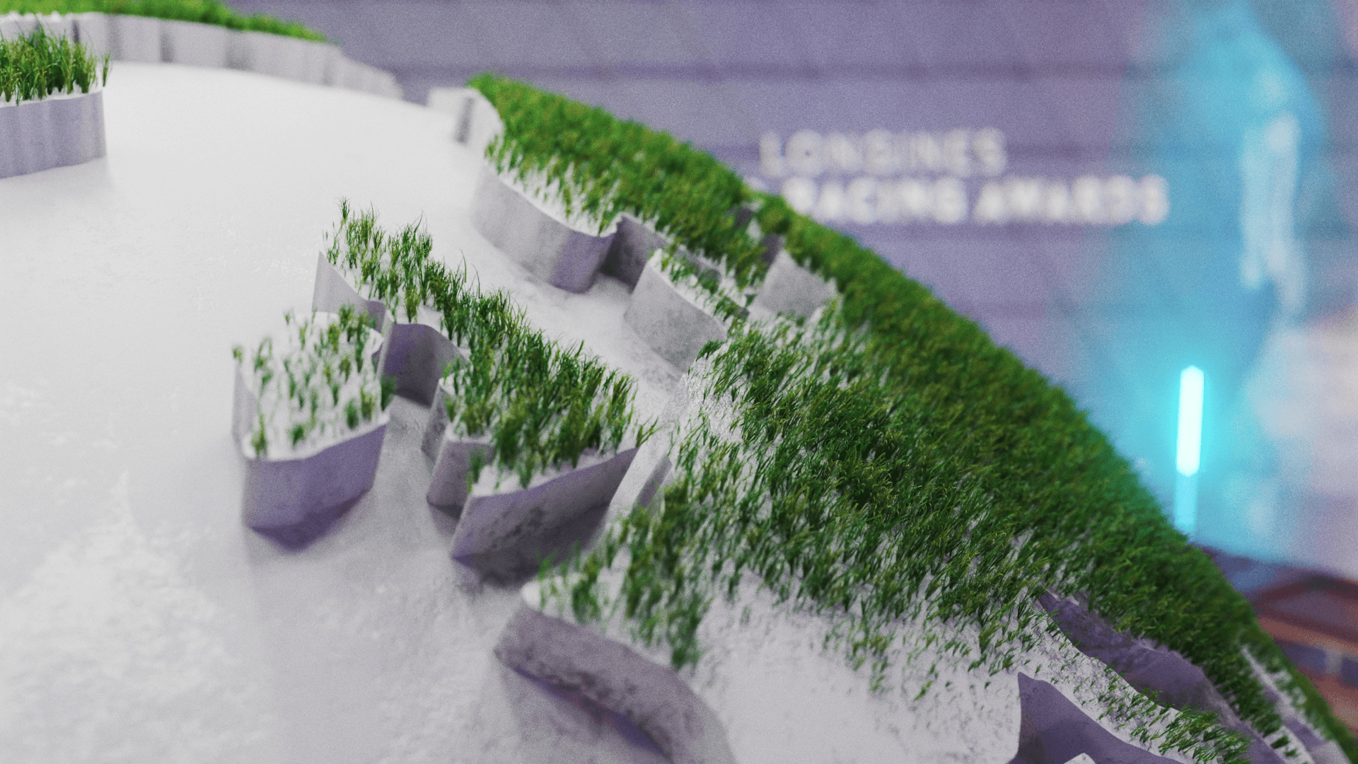 Creating a grass turf system to dynamically spread across the marble globe center piece for the show's titles.